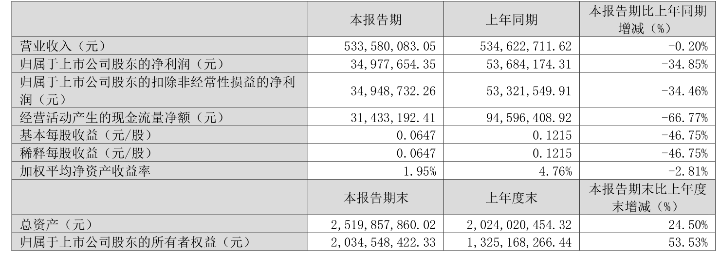 中证智能财讯富岭股份(001356)4月28日披露2025年第一季度报告。公司实现营业总收入5.34亿元,同比下降0.20%;归母净利润3497.77万元,同比下降34.85%;扣非净利润3494.87万元,同比下降34.46%;经营活动产生的现金流量净额为3143.32万元,同比下降66.77%;报告期内,富岭股份基本每股收益为0.0647元,加权平均净资产收益率为1.95%。