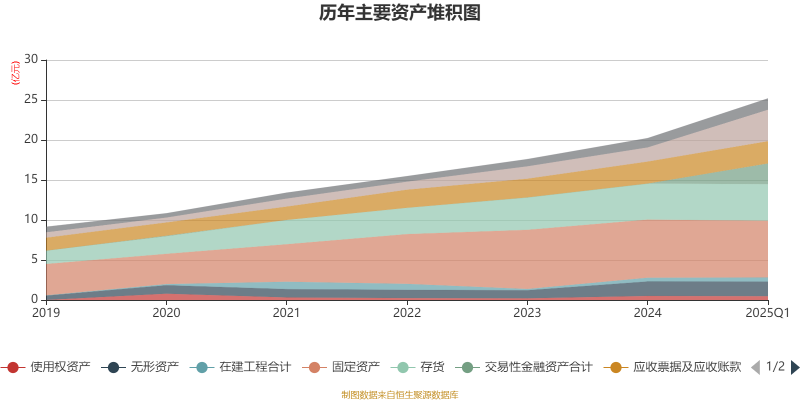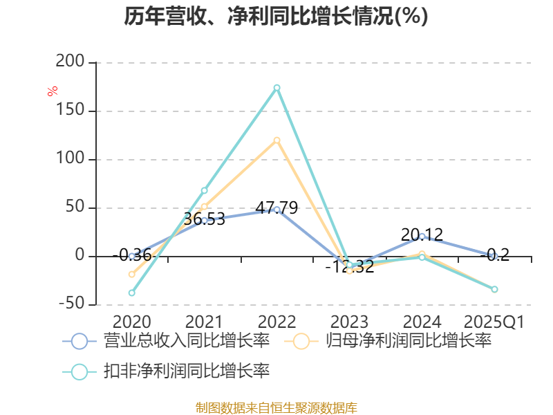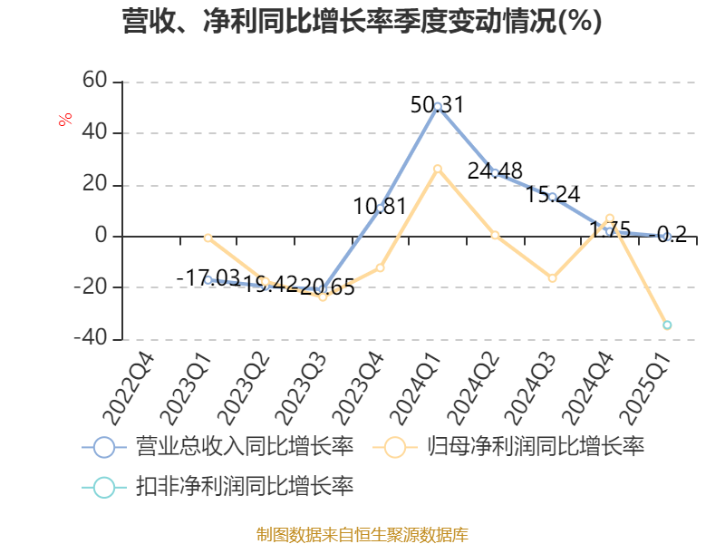资产重大变化方面,截至2025年一季度末,公司交易性金融资产合计占公司总资产的10.32%,上年末为0;固定资产较上年末减少2.39%,占公司总资产比重下降7.75个百分点;货币资金较上年末增加122.03%,占公司总资产比重上升6.84个百分点;存货较上年末增加1.44%,占公司总资产比重下降4.11个百分点。