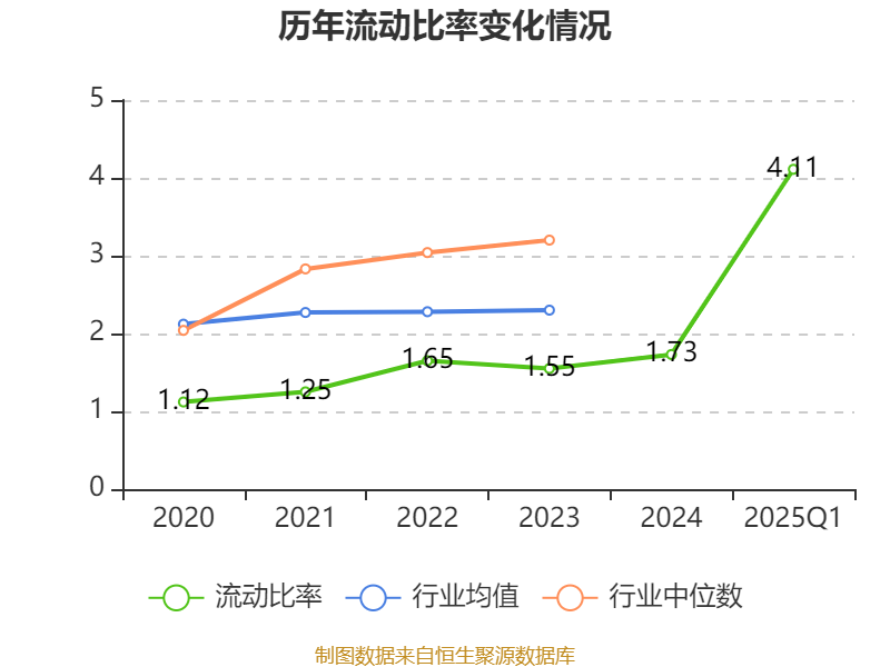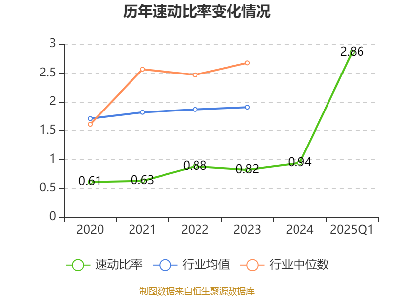 2025年第一季度,公司流动比率为4.11,速动比率为2.86。