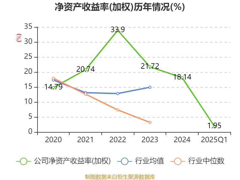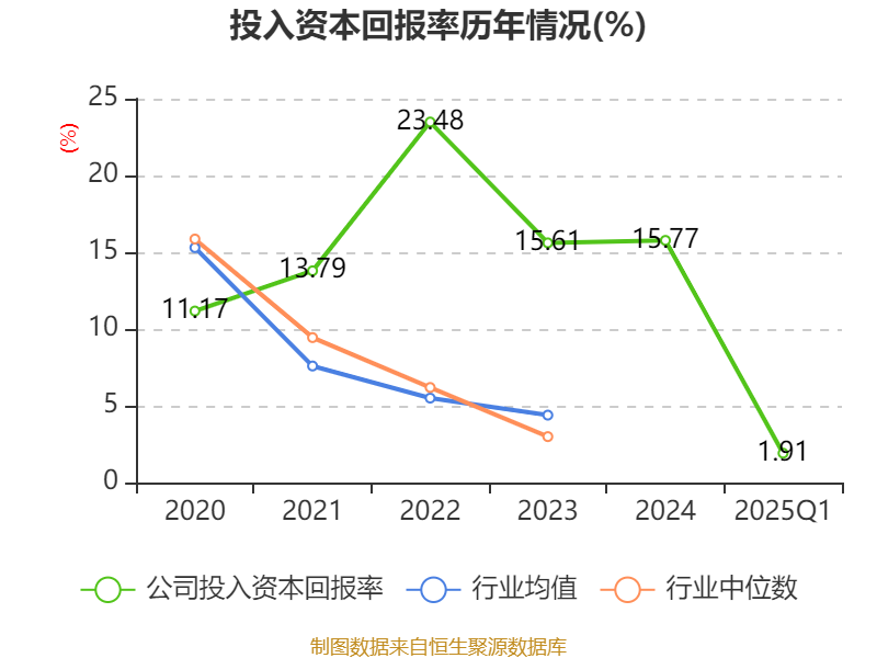 盈利能力方面, 2025年一季度公司加权平均净资产收益率为1.95%,同比下降2.81个百分点。公司2025年第一季度投入资本回报率为1.91%,较上年同期下降6.47个百分点。